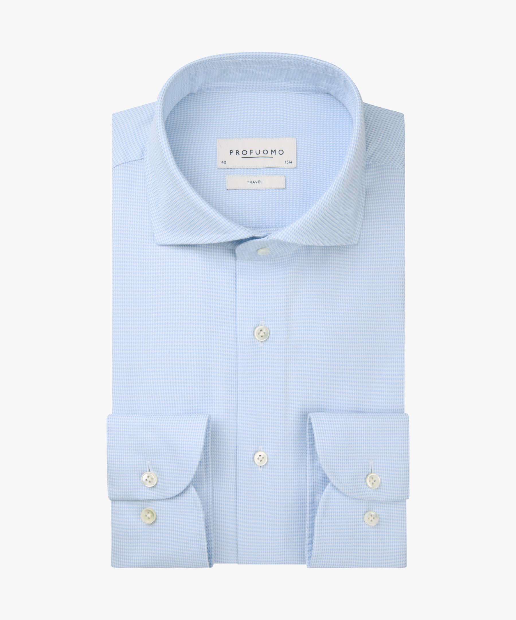 Lichtblauw gestructureerd katoenen slim fit travel overhemd Profuomo - PPXH10013A
